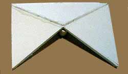 3. Nun werden die Dreiecke zusammengeklebt. Dabei habe ich mir eine kleine Hilfskonstruktion angefertigt. Das im Bild sichtbare Röhrchen sollte eine Höhe von 3 mm haben. Günstig ist es, wenn man die Dreiecke an den Innenkannten etwas anschrägt. |